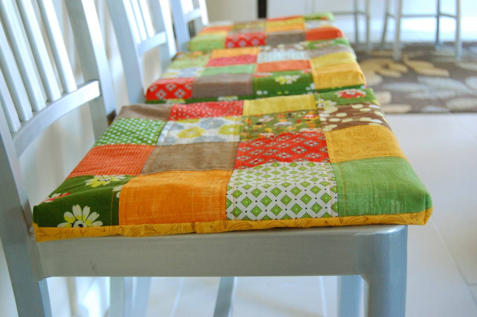 Ваши изделия по форме будут повторять сиденья . Если это табуретки , предназначенные для кухни , то лучше сшить не подушечки, а накидки с резинкой, которые можно легко снять для стирки.