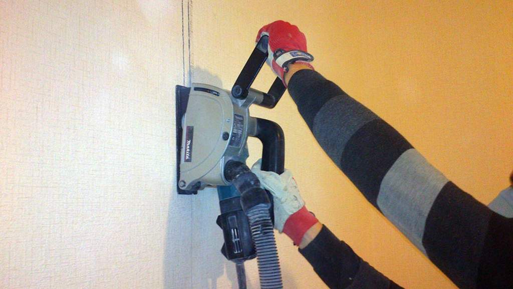 Ровная канавка получается при штроблении стен угловой шлифовальной машиной. С ее помощью прокладывают 2 параллельные линии, середина которых выбивается при помощи зубила или перфоратора. Стоит учесть, что такой способ требует использования довольно дорогих алмазных дисков.