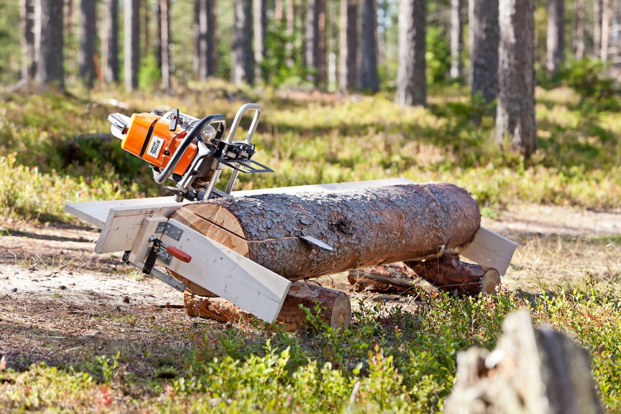 Козлы для пилки дров бензопилой обладают своими особенностями, так как есть отличия в правилах эксплуатации, которые влияют на безопасность рабочего. В этом случае вам нужно будет заранее позаботиться о месте для свободного висения материала, который будет распилен. Так вы сможете избежать зажима инструмента распиливаемым полотном.