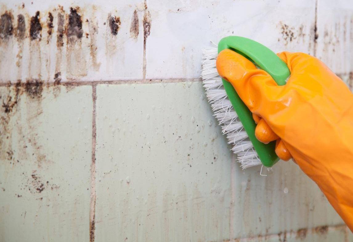 Плесень между стыками плитки можно удалить жесткой щеткой. Но прежде следует смочить поверхность водой или специальным средством.