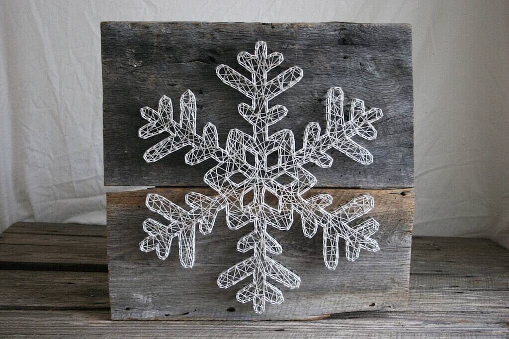Нитка прикрепляется к расположенным по краям гвоздям и натягивается к шляпкам, формирующим границу рисунка. В итоге получается красивый, уникальный узор.