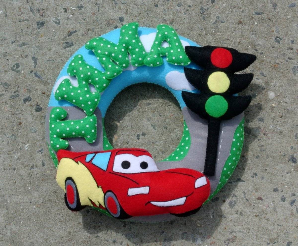 Интересный вариант панно из фетра — композиция из букв имени ребёнка. Поделку можно дополнить фетровыми животными и надписями с датой, когда ребёнок появился на свет, показателями роста и веса малыша при рождении.