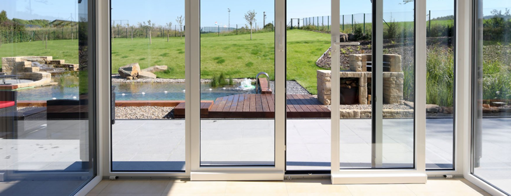 Такой вариант двери имеет совершенно одинаковые параметры по высоте, ширине и заполнению. Если все предыдущие конструкции схожи по манере исполнения, то этот тип полностью отличается и по монтажу, и по внешнему оформлению. После установки создает впечатление обычной стены с большими витринными окнами. Устанавливается как правило на балкон, лоджию, веранду в частных домах.