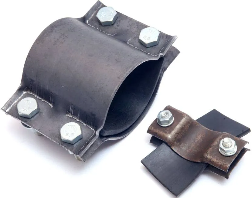 - хомутом, который устанавливается на трубу в месте образования протечки. Хомут оборудован резиновой прокладкой и закрепляется на трубе при помощи крепежных элементов;