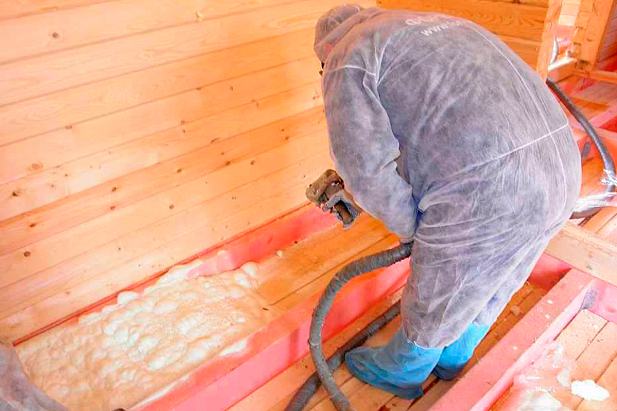 Это материал, представляющий собой двухкомпонентную жидкость. При нанесении она вспенивается и увеличивается в объеме, напоминая монтажную пену. Наносится распылением с помощью специализированного оборудования.