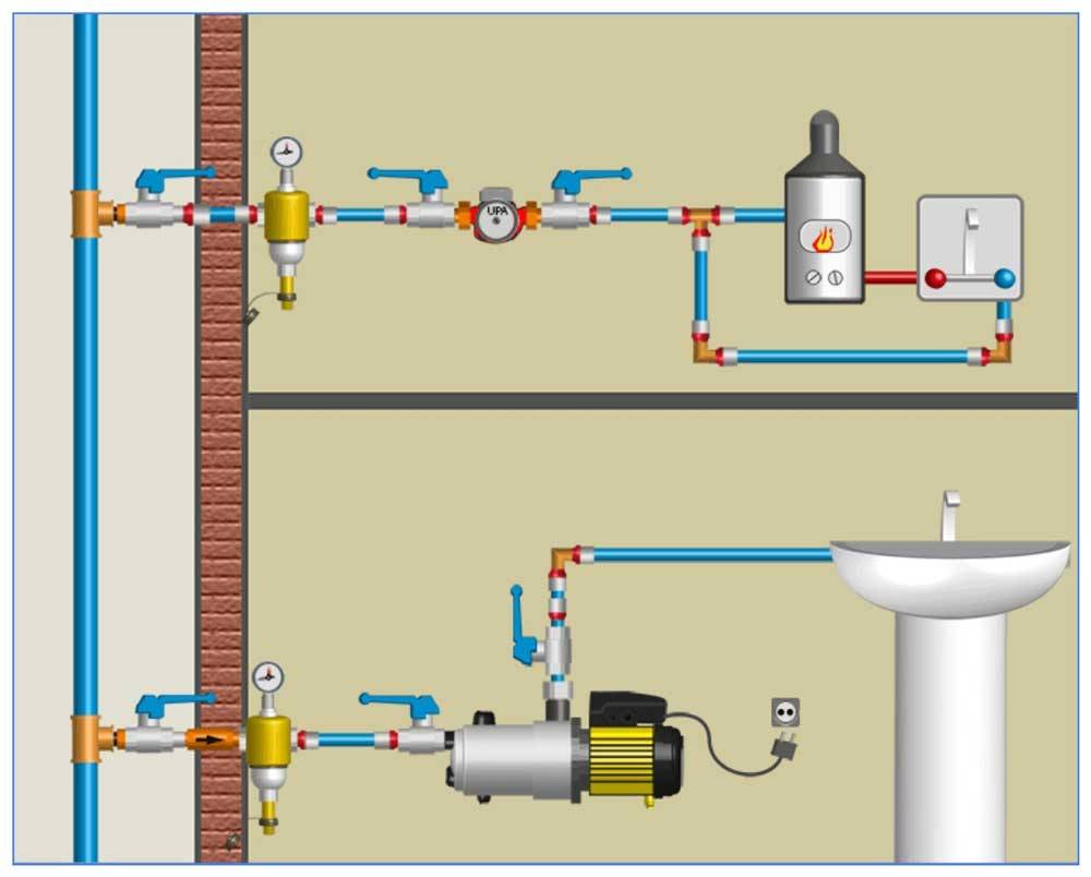 Установка насоса для повышения давления в водопроводе квартиры или частного дома выполняют в такой последовательности: