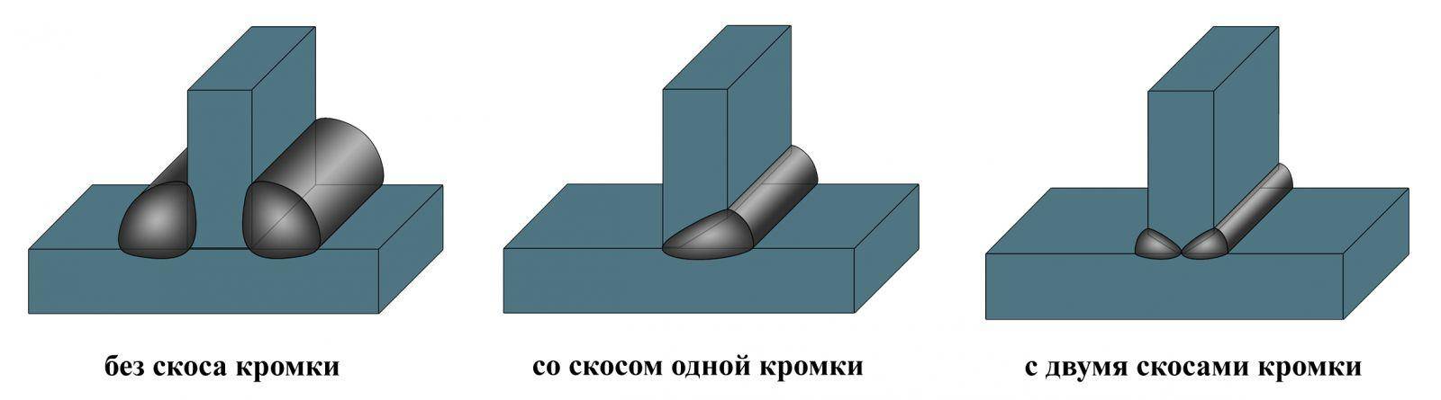 Если две детали образуют в точке соединения литеру «Т», образуется тавровое соединение, а литеру «Г» — угловое. В данном случае число швов и фасок, снимаемых на кромках, также определяется толщиной металла: