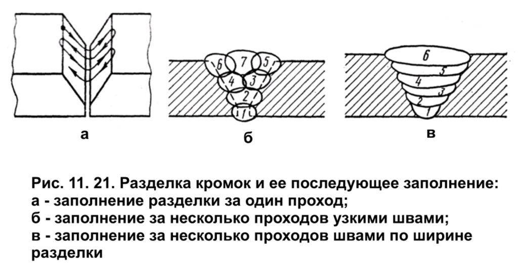 Если толстые детали будут соединяться с односторонней разделкой, расплав наносят в несколько подходов. Такие швы называются многослойными.