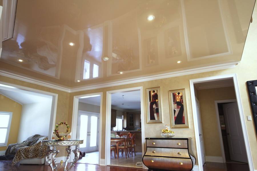 Мы рассмотрели несколько вариантов, но самые реальные и доступные из них – глянцевые натяжные потолки и обычные, крашеные в белый цвет.
