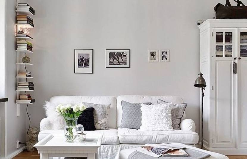 Для того, чтобы маленькая комната стала выглядеть просторнее, для отделки стен и потолка выбирают светлые цвета. В некоторых стилях (скандинавский, минимализм) предпочтение отдается белому цвету. Напольное покрытие обычно несколько темнее остальной отделки: так достигается баланс цветов, и мебель смотрится выигрышнее.