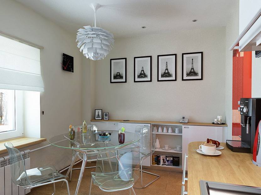 Помещение будет смотреться просторнее, если обставить его мебелью светлого дерева. Полезным дополнением станут предметы из стекла и прозрачного пластика. Улучшить восприятие интерьера поможет грамотно организованное освещение. Оно должно быть разнообразным, с дополнительными бра, светильниками и подсветкой.