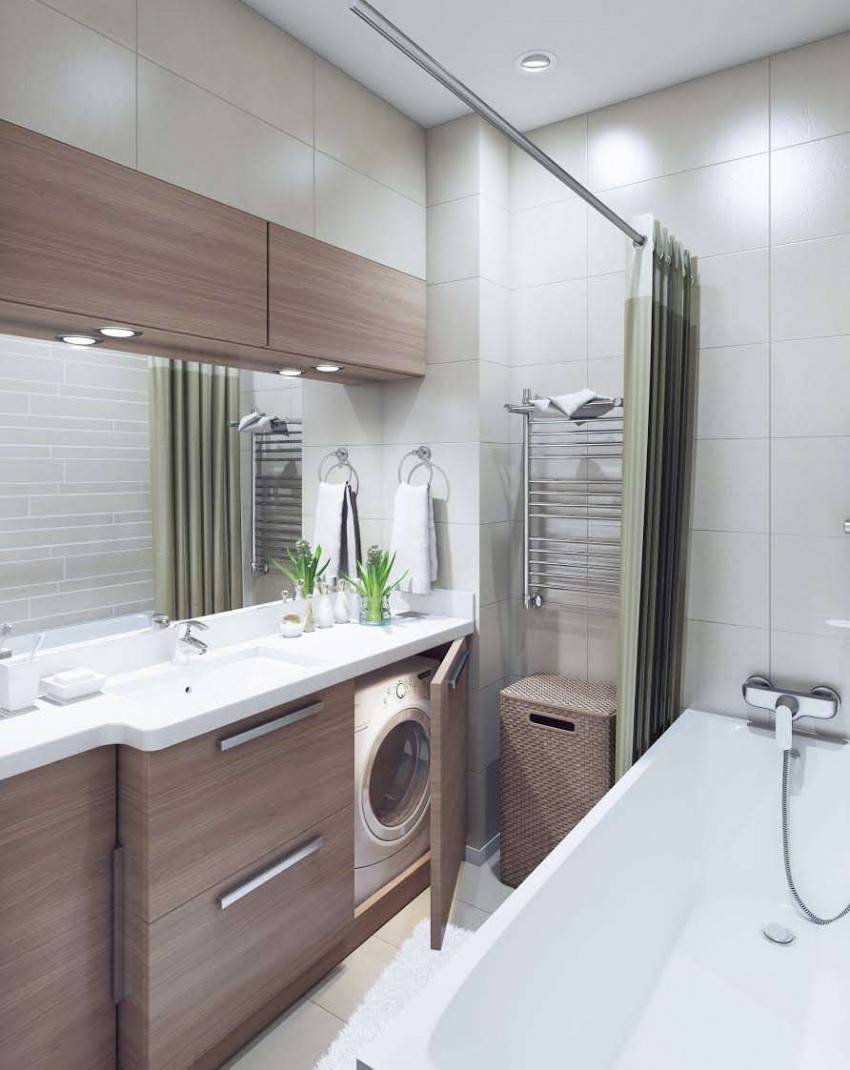 Как вместить в маленькой ванной все что нужно: ванну, раковину, санузел, стиралку, корзину для белья и при этом, чтобы она получилась красивой? Наш ответ здесь — http://flaterra.ru/vannaya/dizain-v/interera-malenkojj-foto-idei.html.