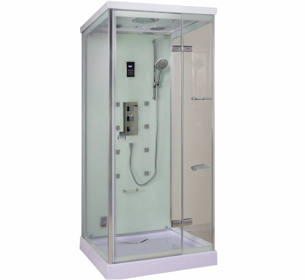 Душевая кабина, оснащенная подобной функцией, вовсе не обязательно должна иметь большие габариты. Наоборот, оптимальным для нее вариантом будет размер сторон всего в 900 мм – такое пространство быстрее прогревается при малых затратах электроэнергии.