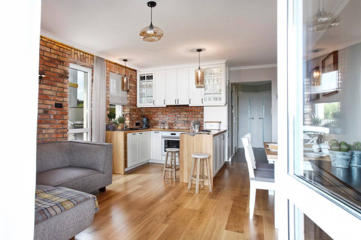 Для зала лучше подобрать универсальный влагостойкий настил. Он стойкий к воздействию солнечным лучам, отталкивает грязь. Доступная цена и простота укладки делают покрытие идеальным вариантом.