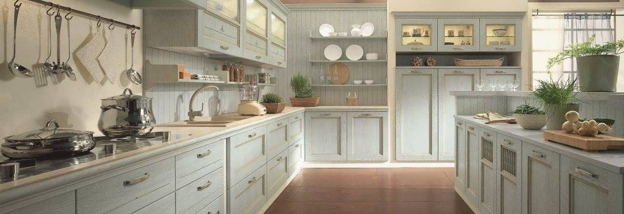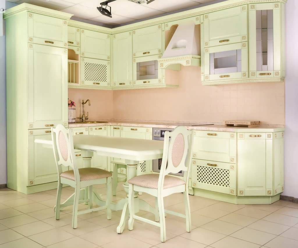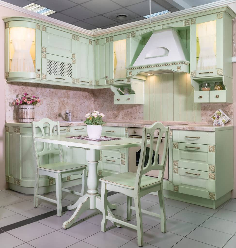 Сочетание белого и фисташкового цвета в интерьере кухни в итальянском стиле