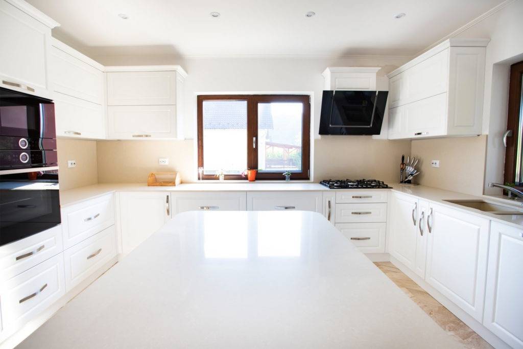 У кухонного гарнитура есть несколько поверхностей: дверцы шкафов (фасады), мебельный каркас, полки и столешница. Разберём для общего развития какие они бывают, хотя на самом деле есть всего 1 верный вариант и его мы явно укажем. На фото будут в основном кухни больших размеров, потому что они клёвые. Если у вас маленькая, куча реальных фоток и особенностей есть тут: Кухонный гарнитур для маленькой кухни.