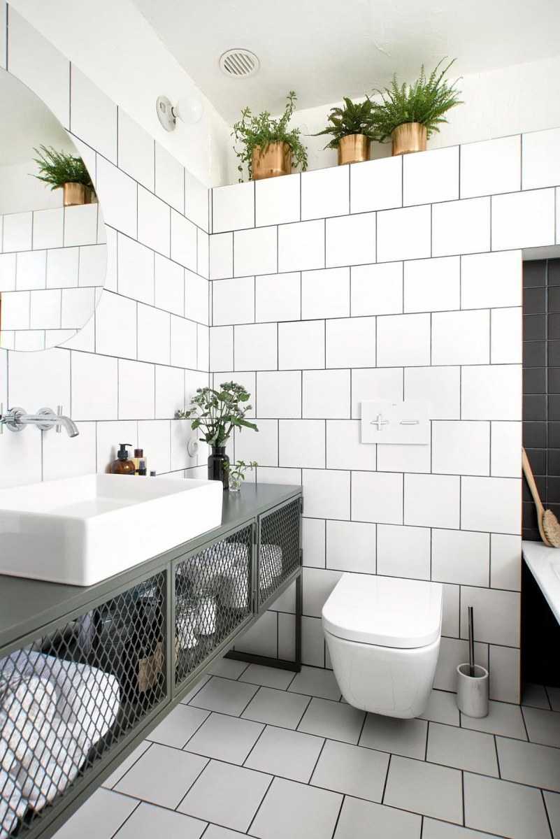 Это наглядная иллюстрация, почему плоха маленькая квадратная плитка да ещё и одного цвета. Она выглядит несовременной и устаревшей, но и классической при этом не является. Это изначально провальный выбор — получить хороший внешний вид категорически невозможно.