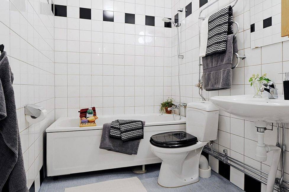 Квадратная. Плитка может быть средних размеров и иметь квадратную форму. Подойдет вполне 45х45 и 50х50. Главное — правильно сочетать цвета, тогда помещение будет выглядеть воздушным.