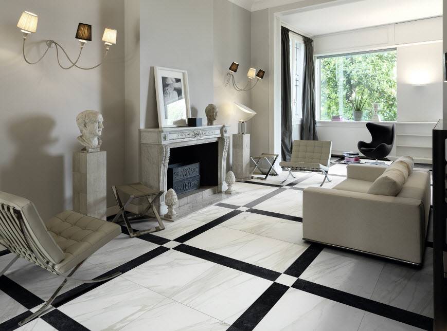 Плитка в гостиной на пол выпускается в трех видах: