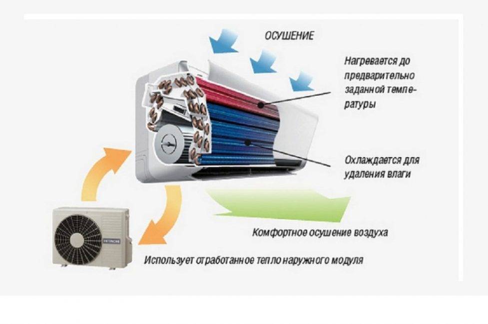 Когда прибор работает в режиме осушения, влага из воздуха в помещении оседает на охлажденном испарителе. Модели с такой функцией оснащаются специальным поддоном для сора конденсата и дренажной трубкой, по которой скопившаяся влага выводится на улицу или в канализацию.