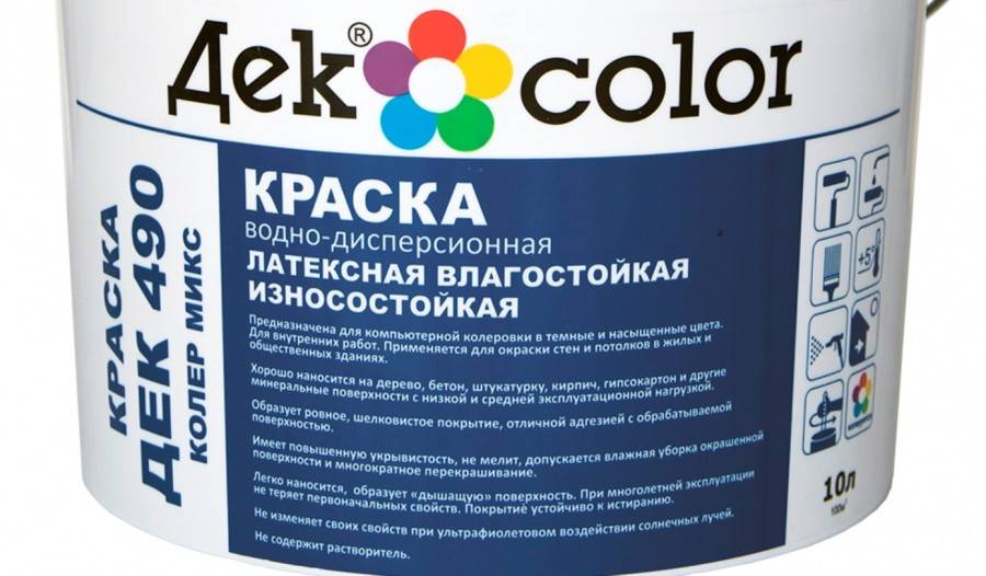 Это один из видов водно-дисперсионных смесей, а в качестве дисперсии применяется латекс. Краска не имеет выраженного запаха, нетоксична, наделена высокой износостойкостью и прочностью. Латекс в ее составе не позволяет эмали вздуваться и пересыхать после применения.
