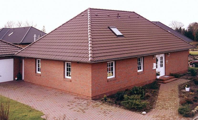 Сложная конструкция сочетает три или более двускатные формы, которые перекрывают дома с пристройками, выделяют зону мансарды с окнами. Щипцы — фронтоны — располагаются параллельно и перпендикулярно друг другу. Эффектная крыша трудоемка в постройке, требует большего расхода материалов, тщательного выполнения стыков.