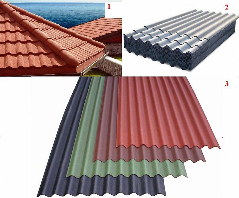 Прочие виды кровли: 1 – композитная черепица, 2 – шифер, 3 – ондулинИсточник tr.skopelitissa.com