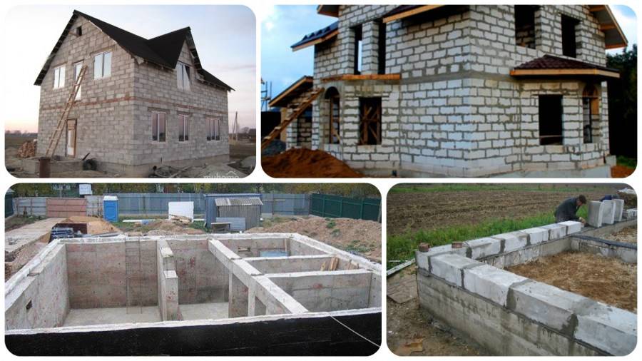 - Определиться с основным стройматериалом (кирпич, дерево, шлакоблок, пеноблок, газоблок и т. д.). В данном случае это шлакоблок, стены из которого не отличаются большой нагрузкой на фундамент, а потому подходят для любых типов оснований.