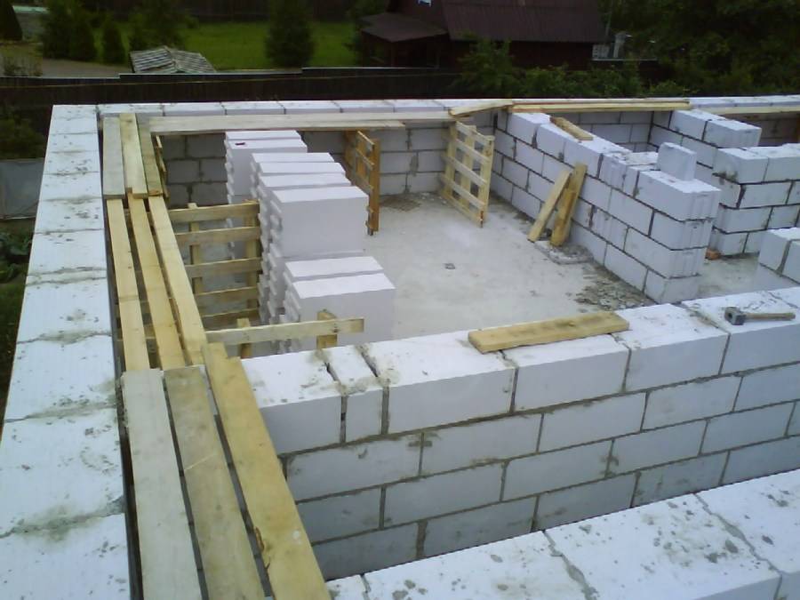- Перемычки между дверьми и окнами можно сделать самостоятельно. Для этого монтируется опалубка из деревянных досок, в которую закладывается армирующий каркас. После этого, заливаем опалубку бетоном.