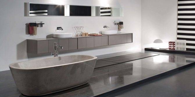 В этой ситуации хорошим решением может стать умывальник с тумбой или раковина с рабочей поверхностью. Умывальники с простыми и правильными формами также хорошо подойдут для этого типа декора.