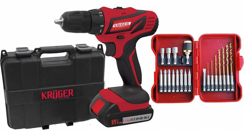 Оснащен быстрозажимным патроном Ø 13 мм, реверсом, подсветкой, индикатором уровня заряда АКБ. Модель поставляется в 4 комплектациях (каждой присваивается свой артикул). Самая простая – это пустая «тушка». Самая навороченная идет с парой АКБ емкостью 3,5 А•ч, зарядным устройством и продуманным кейсом с отсеками для хранения разного рода мелочей.