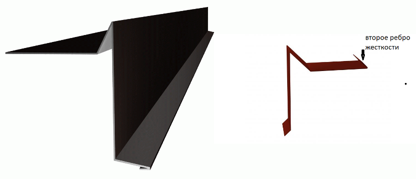 Данный продольный фрагмент в виде уголка требуется для различных прямоугольных элементов крыши: шахт вентиляции, дымовых труб, парапетов. Его длина равна 2 м. Параметры крыла бывают разными, но чаще это 250˟150 мм.