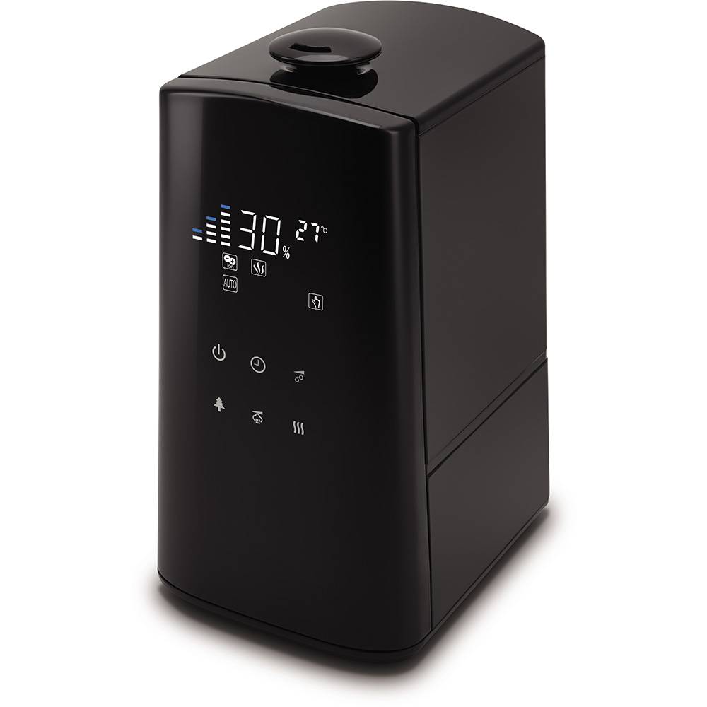 | DELONGHI UH 800 E. Паровой увлажнитель с большим резервуаром для воды на 6,1 литра и рекомендованной площадью помещения 75 м². Заявленное время беспрерывной работы 20 часов. Увлажнение воздуха происходит со скоростью 300 мл/час. По желанию, количество пара можно регулировать. Электронный пульт управления и возможность включения подсветки в ночное время. Плюсы: