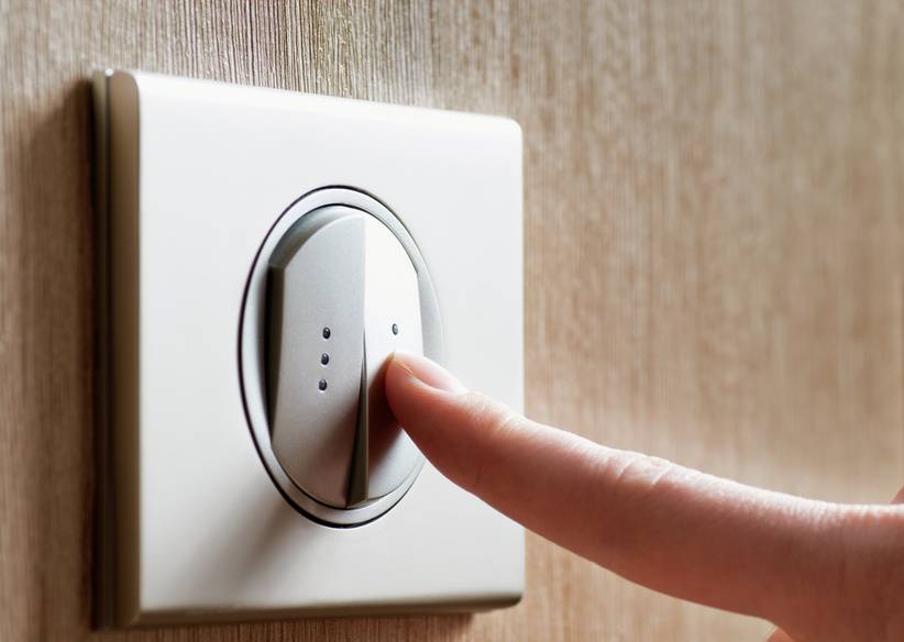 Первый шаг при откручивании лампочки – отключить электроэнергию, т. е. обесточить жилье с электрического щитка. Запомните: нужно не только выключить конкретную лампочку, а именно отключить все освещение. Не каждый из нас знает, что отключить нужно обязательно фазу, а выключатель выходит на ноль. Не стоит подвергать себя риску.