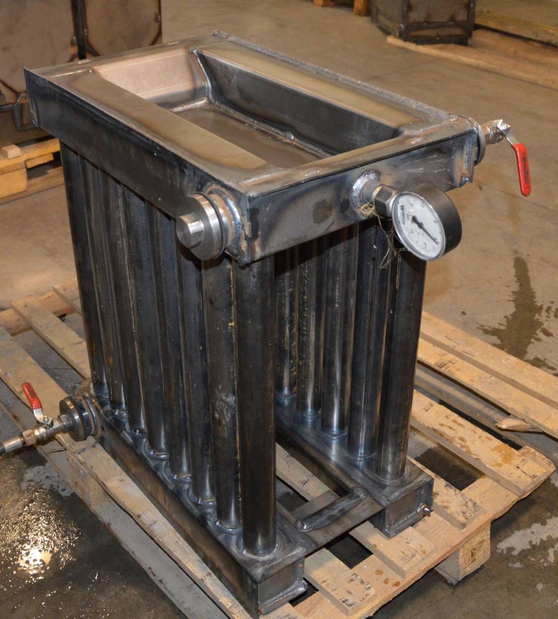 Чугун по характеристикам лучше, чем сталь. Сделать собственными руками теплообменник сложно. Если взять готовую батарею, при сгорании горючего в топке будет постепенно выгорать уплотнитель, расположенный между секциями. Это увеличивает риск утечки воды в топку, существенно снизит коэффициент полезного действия печи. Чугунную батарею сложно почистить изнутри от сажи.