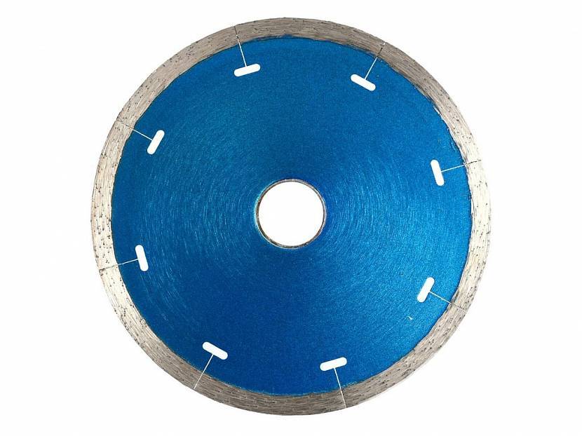 Сплошные позиционируются производителями в основном для «мокрой» резки. Т.е. для резки с охлаждением водой или специальными жидкостями. И не применяются для резки без охлаждения, так как могут быстро выходить из строя. Однако когда стоит задача получения среза с как можно меньшим количеством сколов именно сплошной диск может лучше подойти. Это ситуационно и во многом зависит от конкретного материала (качество, толщина, рельефность и прочее), который обрабатывается;