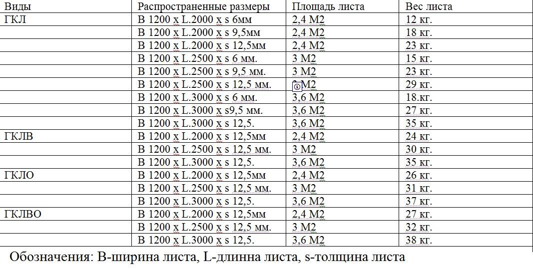 Выбирая листы ГКЛ по параметру толщины учитывайте, что для ровной поверхности стены накладываются листы потолще, а на криволинейную поверхность — потоньше. На представленной таблице можно ознакомиться с оптимальными параметрами и соотношениями ГКЛ листов.