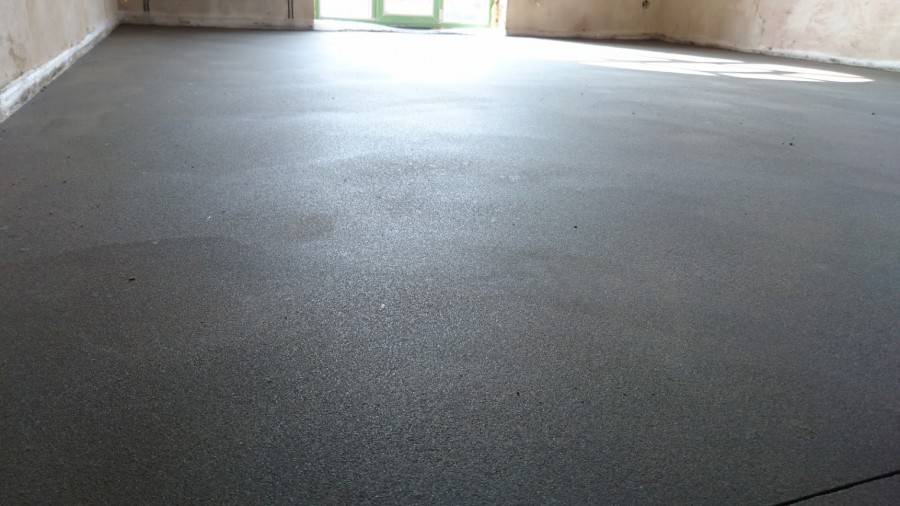 Собственно простая стяжка, которая выполняется с бетона и примесей для увеличения его объёма, с целью экономии. Но такая экономия ничуть не сказывается на прочности и долговечность.