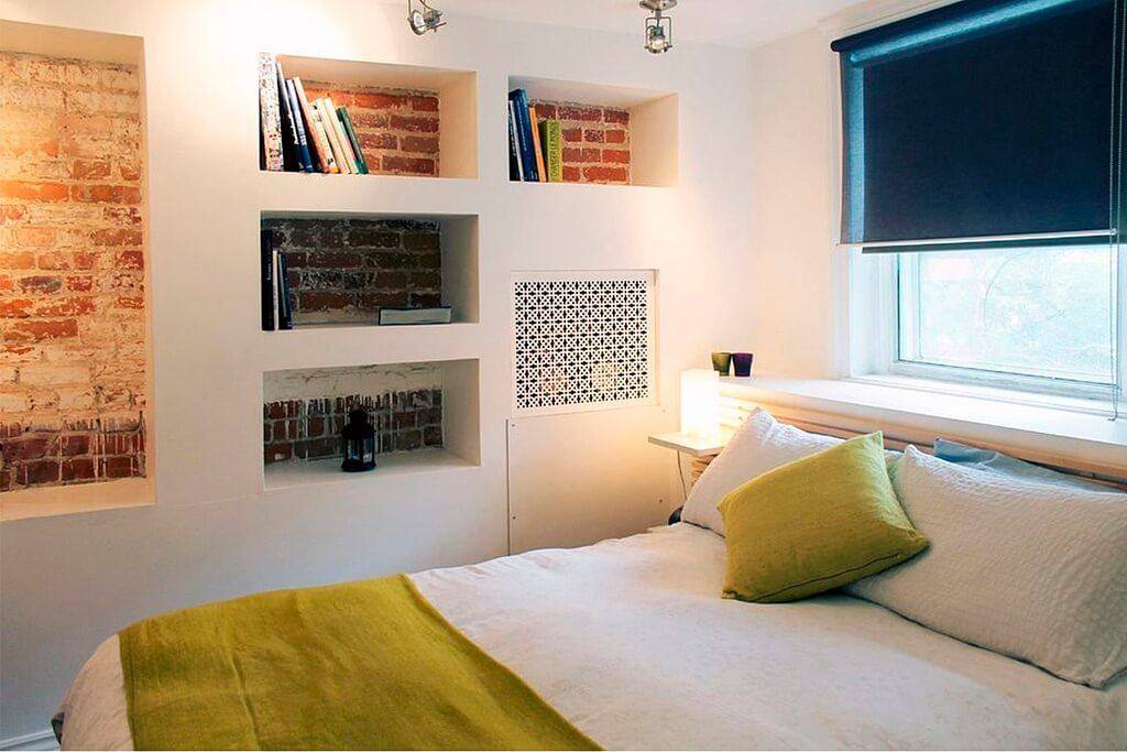 Более крупные ниши могут быть оснащены встроенными шкафами или полками, которые экономичнее по площади, чем традиционная каркасная мебель. Встроенный шкаф в спальне — это не только реальное пространство для хранения вещей, но и возможность красиво оформить дизайн стены.