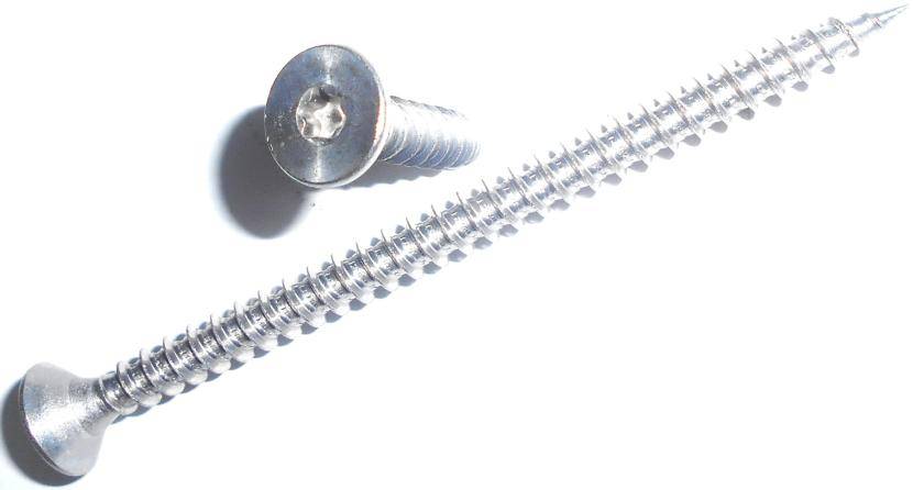 делают из закаленной стали, с потайной головкой. Применяются так же, как универсальный крепеж. Для больших диаметров нужно направляющее отверстие, небольшие шурупы можно вкручивать и без него.