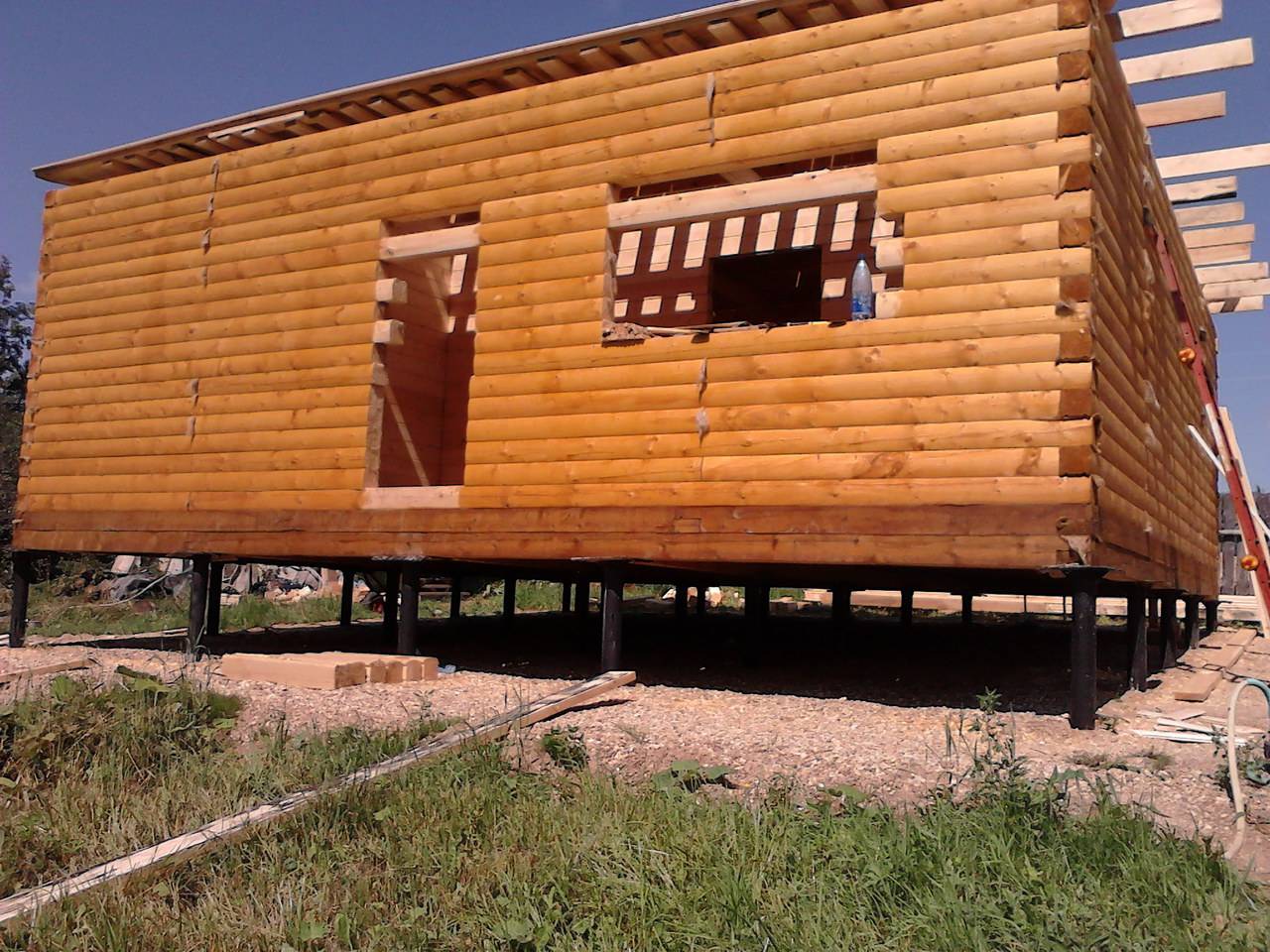 Число опор зависит от конструкции дома, но не может быть менее четырех. Их устанавливают в углах сооружения