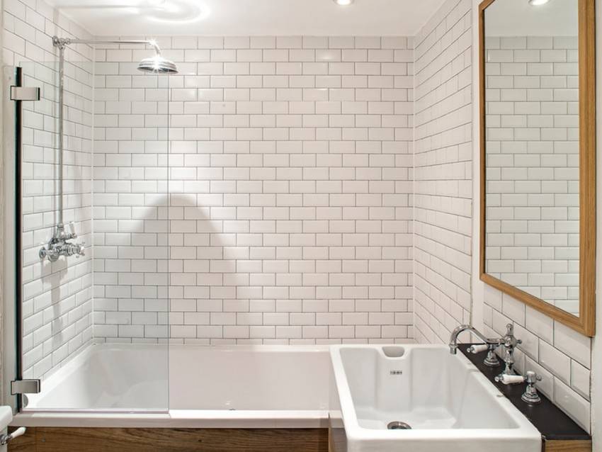 Для комнаты с минимальной площадью оптимальными считаются душевая кабина или открытый душ за перегородкой. Прозрачная стенка душевого уголка визуально сохраняет объем помещения, особенно если отделка комнаты выполнена в светлых тонах.