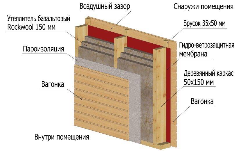 О: Оптимальная толщина, с учетом необходимой толщины конструкции, других параметров, — 150мм. Однако это число не учитывает общую толщину внешней стороны конструкции (отделку, внешний слой термозащиты, толщину каркаса).
