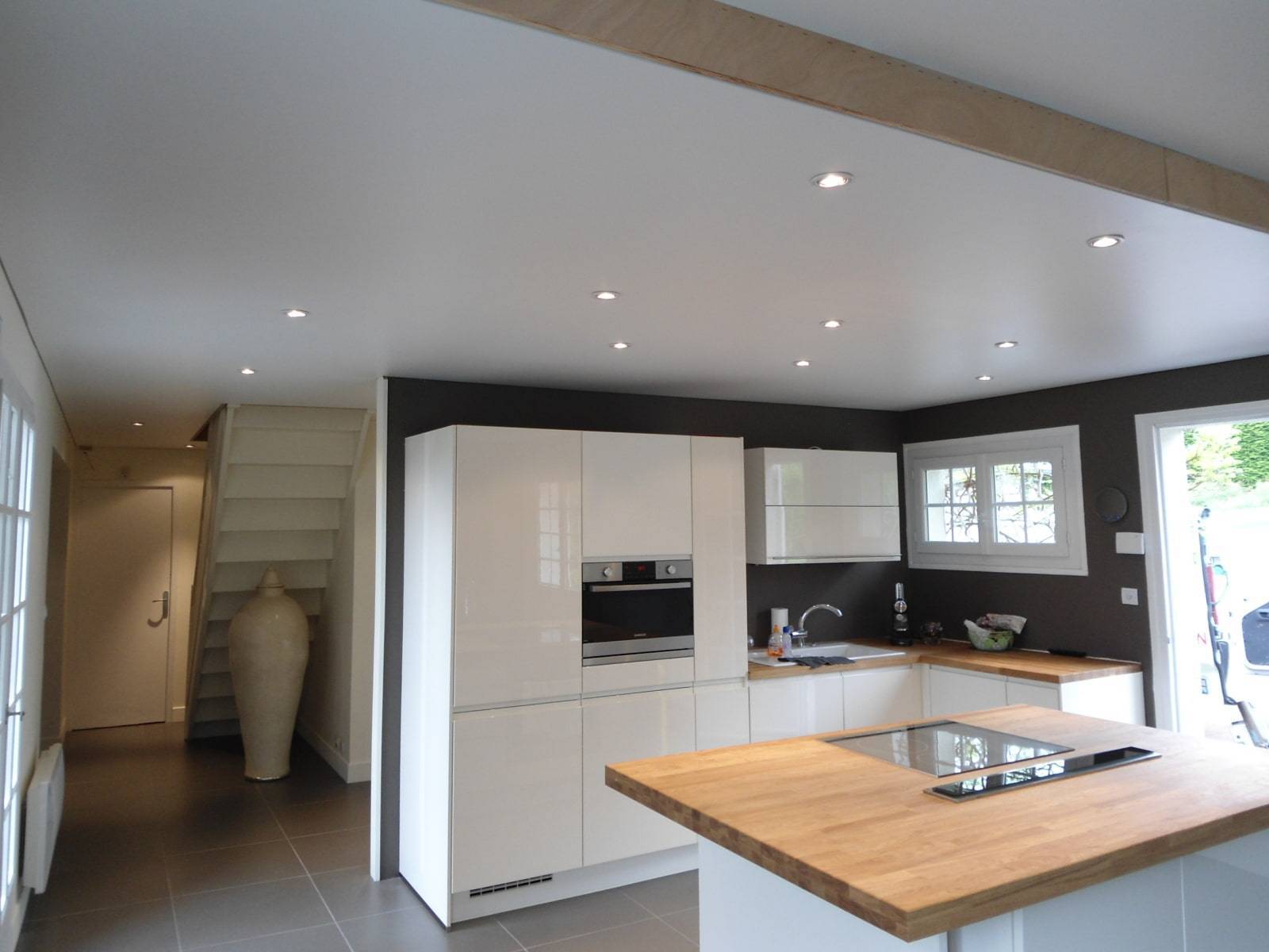Натяжные конструкции выглядят эффектно и придают помещению больше уютности. Они подойдут, как для небольшой, так и для более просторной кухни.