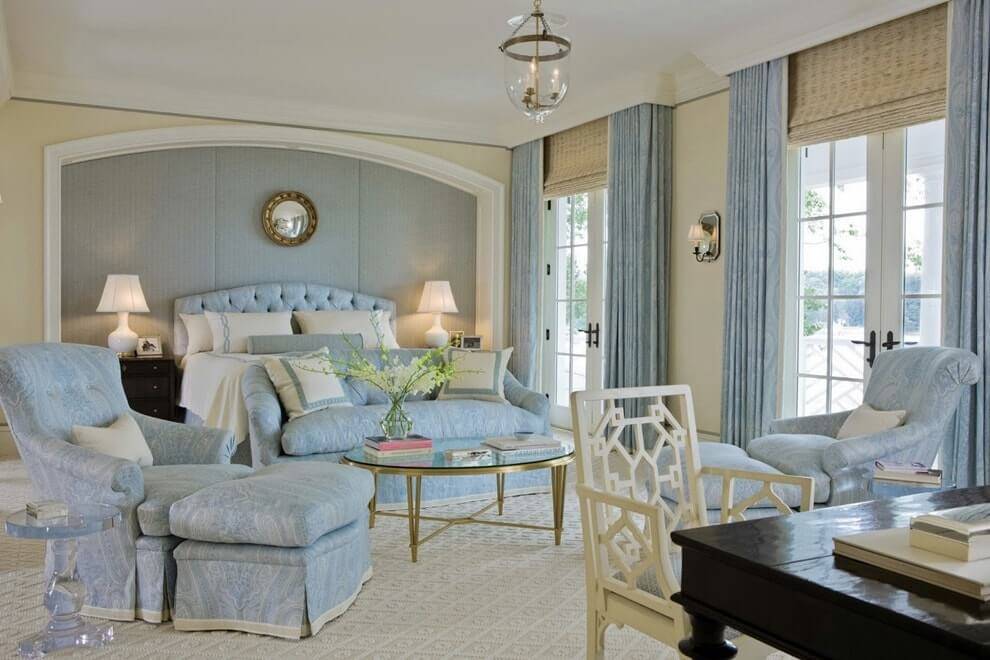 Бежево-голубая комбинация смотрится очень эффектно, элегантно и за счет своей прохладности расширяет интерьерное пространство, наделяя его светом и свежестью. В данном тандеме, беж представляет собой фон, а голубой выступает в качестве тонового акцента.