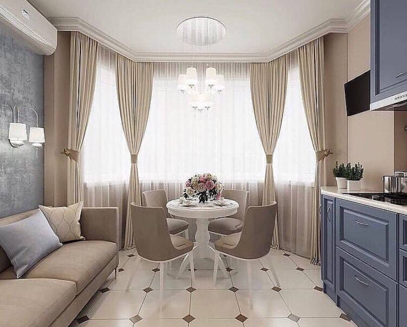Универсальность – немаловажный пункт. Под такое цветовое решение можно сочетать абсолютно любой тон мебели, штор, декора, бытовой техники и прочего. Хорошо смотрится классика: серый, белый, черный. Можно сделать яркие акценты – добавить красного, бирюзы, синего, мятного.