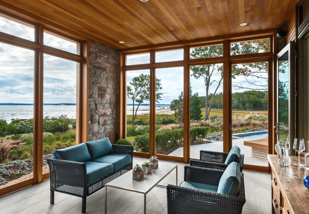 Для частных домов рекомендуется установка крупногабаритных оконных конструкций, так как визуально они дают больше пространства, делают помещение более светлым. Для того, чтобы зимой помещение не остывало, используют многокамерный стеклопакет, кроме того, можно применить специальные энергосберегающие стекла. Они способны отразить образовавшееся в комнате тепло, не дав ему рассеяться на улице, благодаря этому экономия энергоресурсов зимой достигает достаточно большого процента.