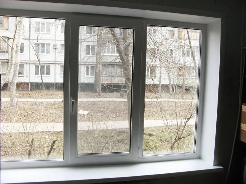 Трёхстворчатое. Вариант пластикового окна с тремя створками. Монтируется в большие оконные пролёты объёмных гостиных, просторных залов, офисов.