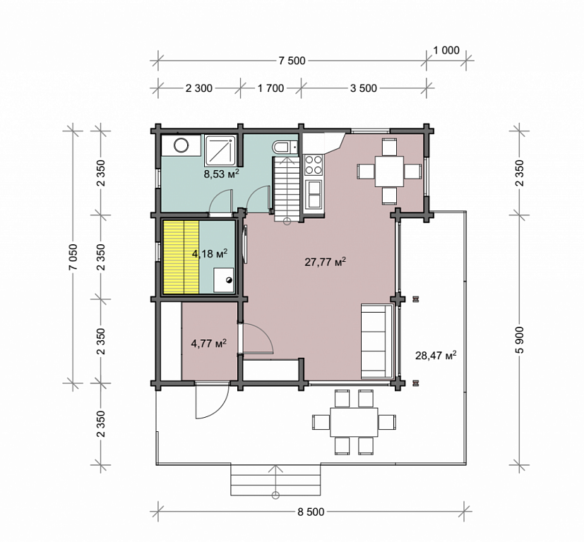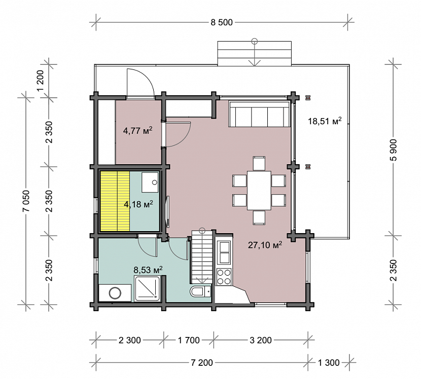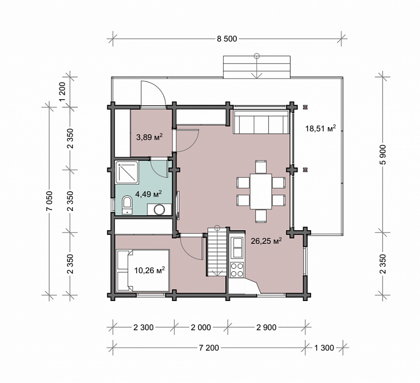 Одноэтажный дом 7*7,5 с пристроенной террасой