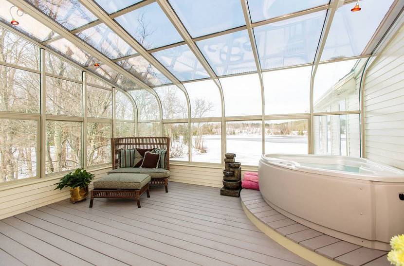 - хорошая пропускная способность (до 90% лучей), благодаря чему на террасу попадает достаточное количество естественного света, а также исключается эффект закрытого кокона;